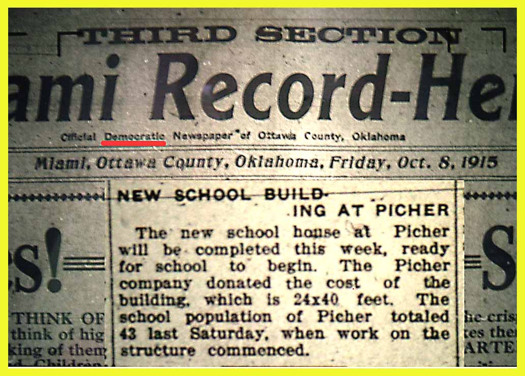 The first school in Picher was indeed in a schoolhouse. Rev. Post was hired as Schoolmaster. Upon building the "Twin Schools", the original "schoolhouse" was given to Rev. Post for a church. So, school was never held in the church house, church was held in the schoolhouse. Of course, most people wouldn't look it up, they'd just go along with popular opinion.