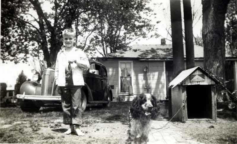 his "wheels", got his trusty Springer spaniel, Corky, chained to the dilapidated