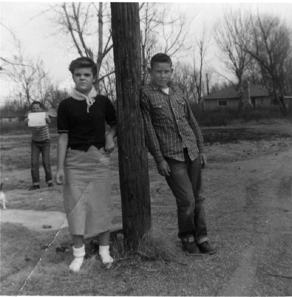 I'd like to know what the sign says that Tommy is holding, and why Carolyn Jackson has her shoes off.Also in the picture is Bill Parkison, and they are in front of the Richardson home.