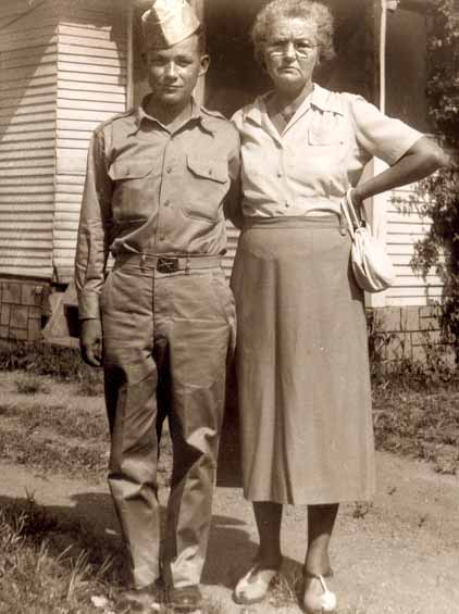 Henry Patton and his mother, Callie,with Green's house in the background.