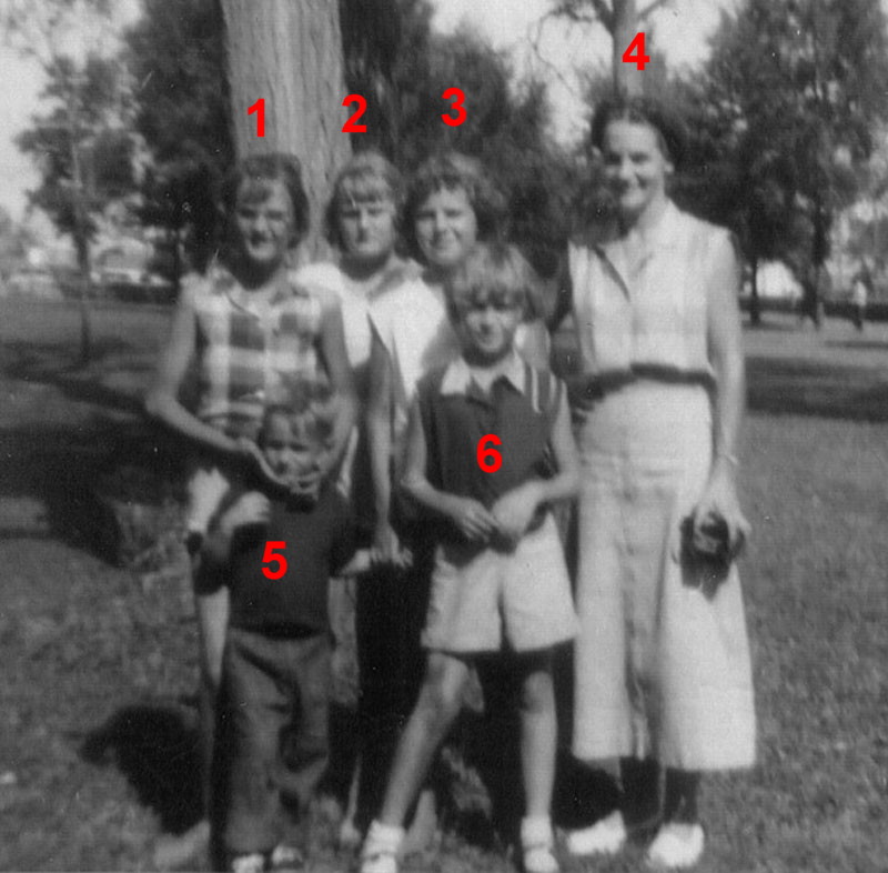 #1- Lorene Boyd, 2- Roberta Boyd, 3- Pat Crawford, 4- Patsy Hatfield,5- ? Hatfield? 6- Barbara Cover