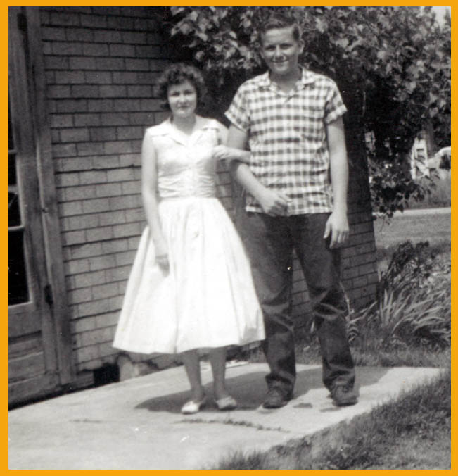 On Richardson's front porch, June, 1960The reason for Pete's dress hasn't been determined yet,but it's possible it was her freshman graduation