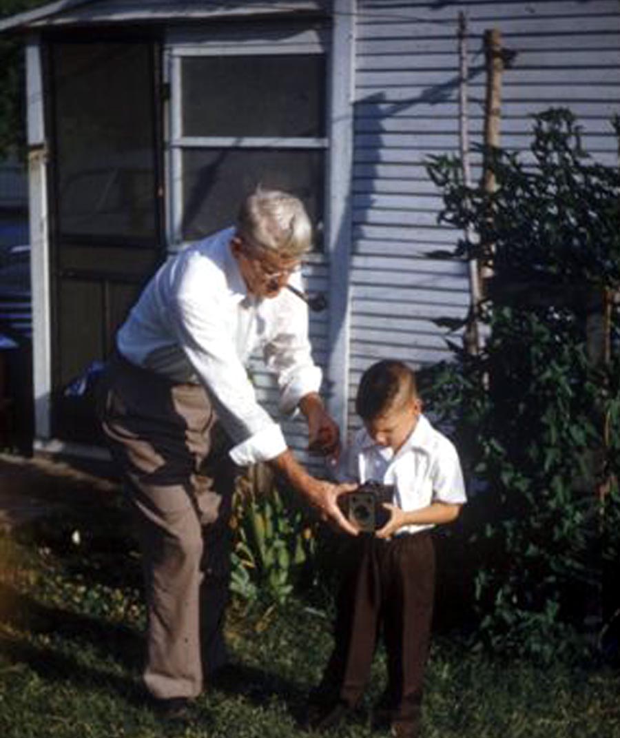 Remember when little boys were dressed like that? And, had their hair cut and combed?This is Virgil T. Harrison, Cardin, and his grandson, Clay Harrison.Remember the cameras?