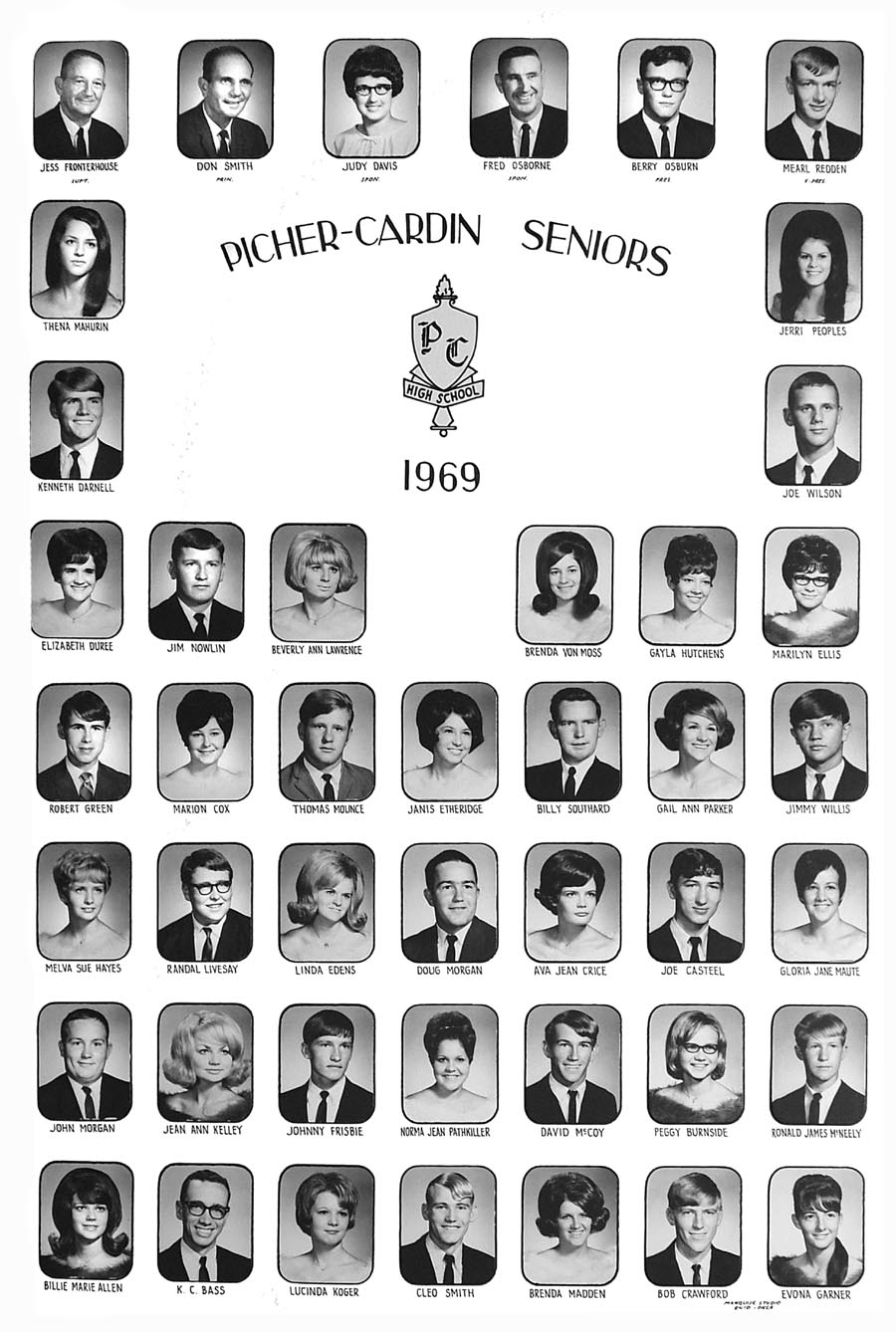 Jess Fronterhouse, Supt., Don Smith, Prin., Judy Davis, Spon., Fred Osborn, Spon., Barry Osburn, Pres., Mearl Redden, V. Pres.