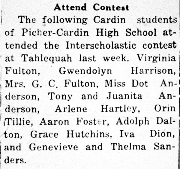 Virginia Fulton, Gwendolyn Harrison, G. C. Fulton, Dot Anderson, Tony Anderson, Juanita anderson,Arlene Hartley, Orin Tilley, Grace Hutchins, Iva Dion, Genevieve Sanders, Thelma Sanders