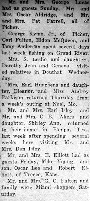S. Leslie, Dorothy Jean Leslie, Geneva Leslie, Earl Huachens (Hutchins), Elanor Hutchins, Audrey Parkison,
