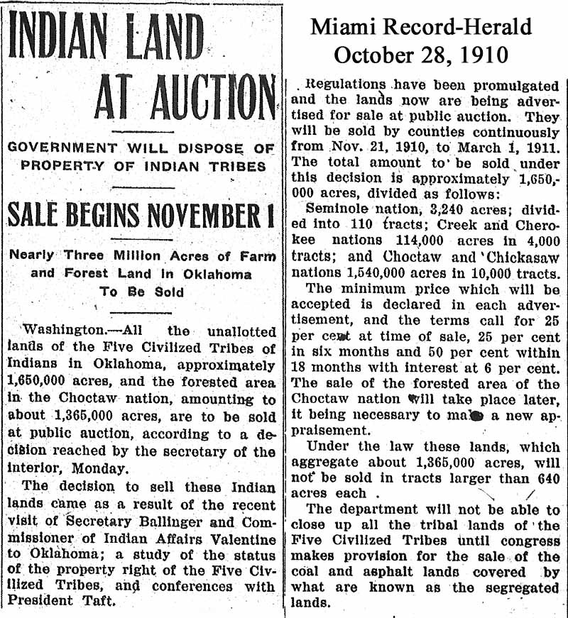 First, the government removed them from their homelands and put them in "Indian Territory". Then the government began taking that from then too.