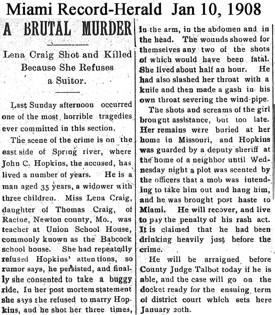 John C. Hopkins Lena Craig Thomas Craig Judge Talbot