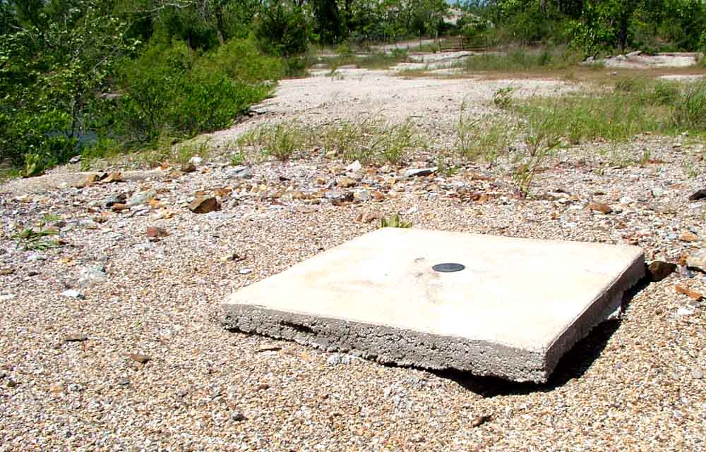 Here is a plugged shaft. In the background, you can see the road leading between the chat piles to the WoodchuckOn the left, you can see the "lake"