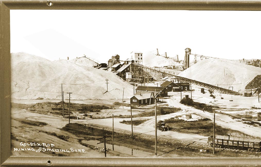 In this section, you can see the Picher water tower just over the chat pileLeft of center. The black buildings were later painted white.
