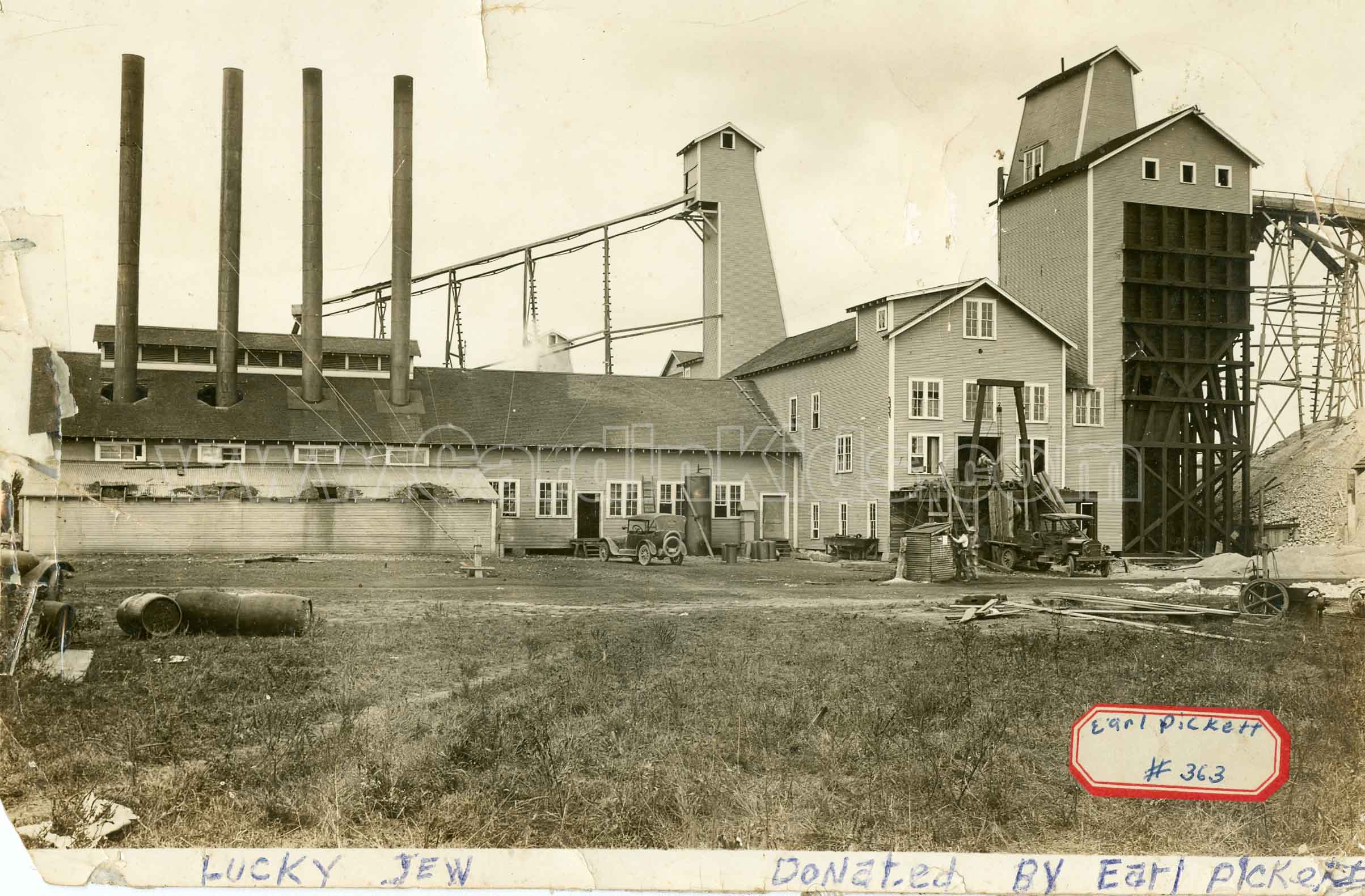 Beautiful unrestored view of the Lucky Jew Mill under construction. Coal has already been delivered for each boiler, but the roof flashing hasn't been installed for all the stacks Notice all the guy wires for the stacks Located near Melrose KS. |