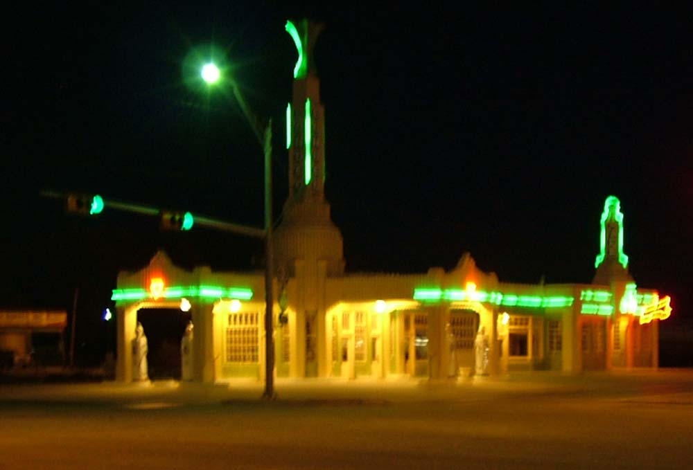 On our return trip, we stopped and took this picture of the neon. I was sick as a dog, didn't have the tripod, etc. Gives you an idea of what it must have looked like before the windstorm tore most of the neon off, though