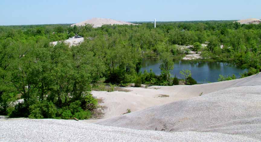 The view from the top, looking north, toward town, over what's left of the Lucky Bill mine and mill. The Cardin water tower is in the center.