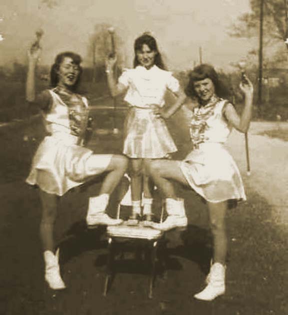 The Pattison twins were majorettes at Quapaw High in 1954.(Picture taken on Main Street, in front of their home)