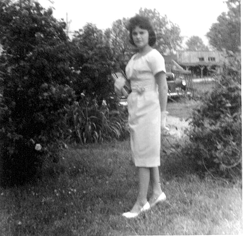 May 18, 1961Graduation Day!White Gloves!Ruby Olds with Clifford's Grocery, Douthat, in the background