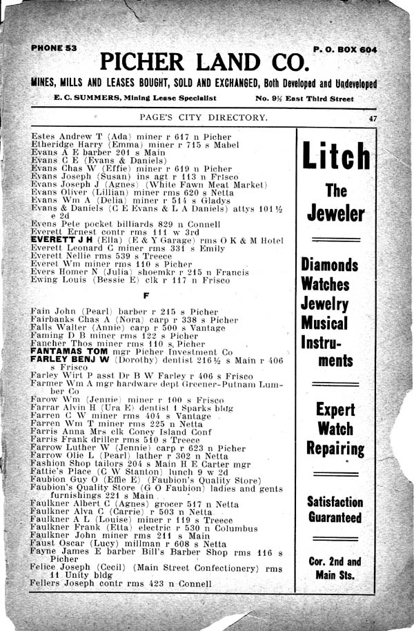 Fairbanks Chas A (Nora carp r 338 s Picher