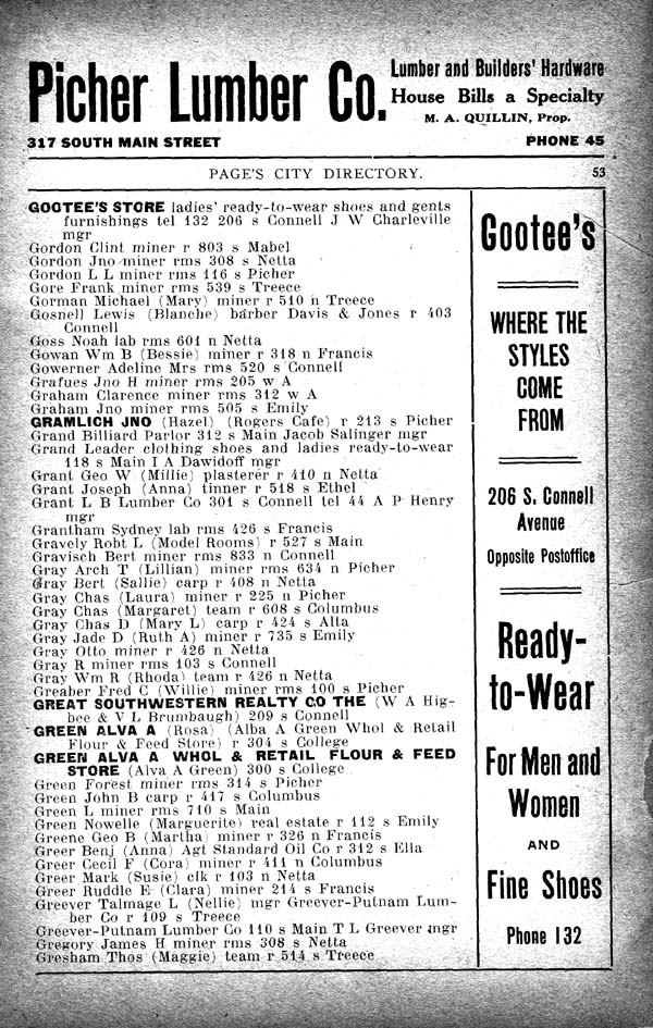 GRAMLICH JNO (Hazel) (Rogers Café) r 213 s Picher