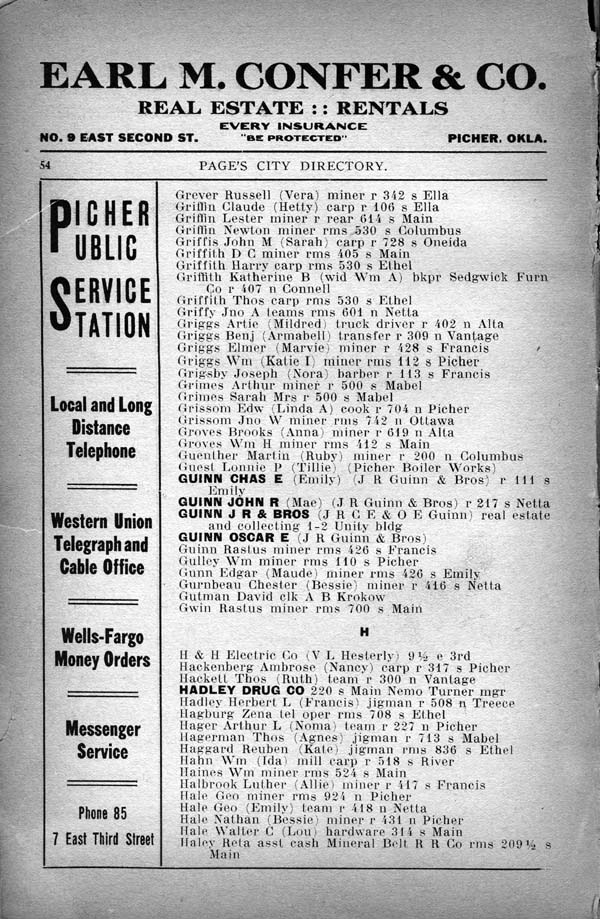 Griggs Wm (Katie) miner rms 112 s Picher