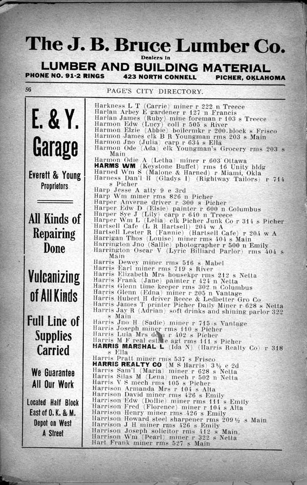 Harper Wm L (Lelia) clk Picher Junk Co r 314 s Picher