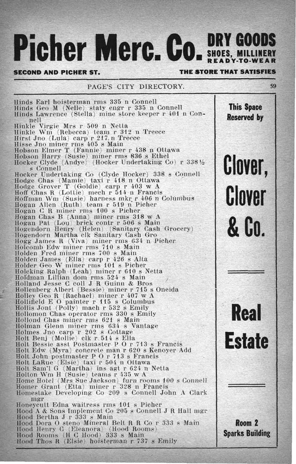 Hill Edw A (Alice) miner r 315 Kenoyer Add
