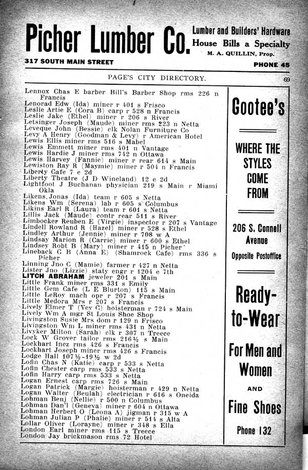 Lindsey Robt B (Mary) miner r 415 n Picher