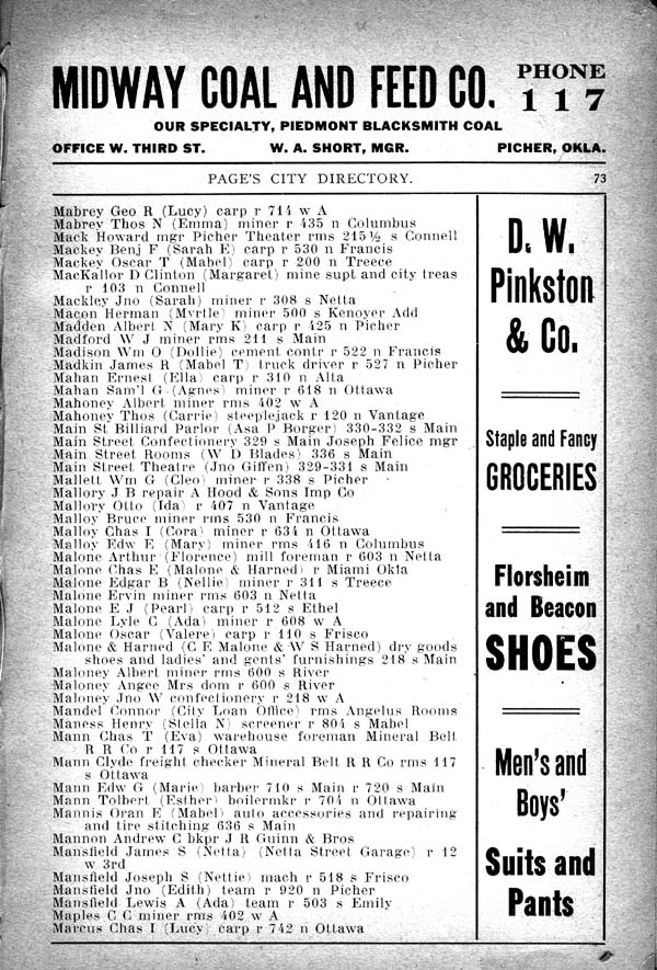 Madkin James R (Mabel T) truck driver r 527 n Picher