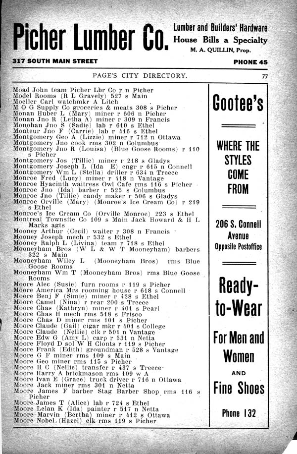 Moore Alec (Susie) furn rooms r 119 s Picher