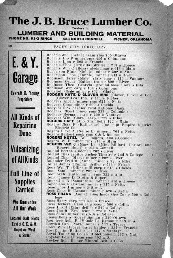 ROGERS HOTEL (W J Rogers) 103 s Connell