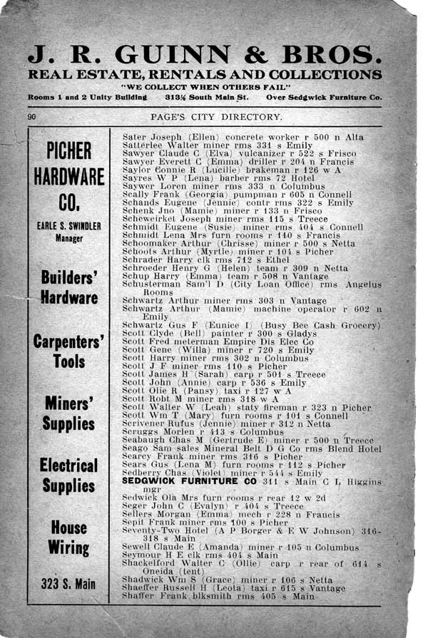 Sears Gus (Lena M) furn rooms r 112 s Picher