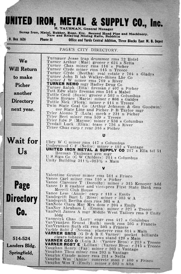UNITED IRON METAL & SUPPLY CO 217 s Ella tel 51