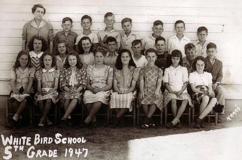 | See, I'm not limited to Cardin Kids only! Thanks to Earline (Rowe) Holden, we have lots of names for this one. Top row: Mrs. Colvin, ?, ?, John Poor, ?, ?, Jim Coble, Ron "Punk" Walkenshaw Middle row: Pat Wagoner, Veda Newberry, Norma Jean Hodge, Darrell Davis, Richard Lawrence, Walter Cook, Freddie Gerhart, Orville Stockwell. Bottom row: ?, ?, Norma Edens, Glenna Frisbie, ?, ?, ?, ?, ?, Earline Rowe