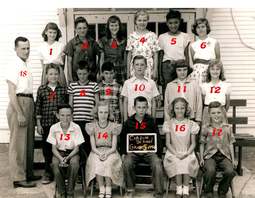 | #1- Karlene Heatherly, 2- Don Carnes, 5- Walter Emarthla, 6- Shelia Lowery, 7- Charlie Miller, 8- Glen Fox, 9- Ruby Olds, 10- Wayne Leggett?, 11- Sandra Foster, 12- ? Searl? 13, Jimmy Cover, 15, Bill Parkison, 16- Lorene Boyd, 17, John J. Hale, 18- C. H. Kerr, teacher and principal |