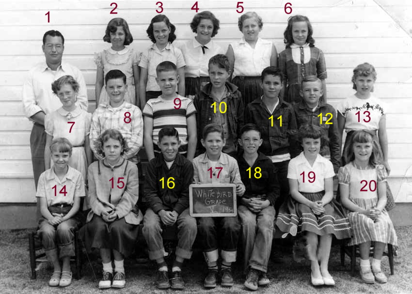 #1- H. C. McMullin, 2- Jane Truesdale, 4- Sherma Delcour, 5- Dorothy Sigle, 6- Billie Burk, 7- Opal Canady, 8- Billy Don Beam, 9- David Johnson, 11- Jack Glover, 12- Larry Madden, 14- Judy Hewett, 16- Buddy Kerley, 17- Morris Williams, 18- Charles Hile, 19- Sharolyn Sue Poole, 20- Barbara Spoon?