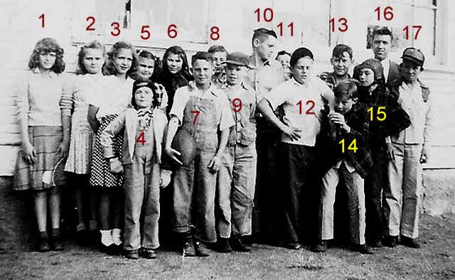 #1-Norma Culp, 2- Joan Holt, 3- Billie Garrett, 4- Marvin Yost, 5- Norna Jean Dye, 7- Gene Henry, #8- Keith Bennett, 10- Leroy "Chink" Enders, 12- Roy "Petie" Young, 13- Orval Qualls, 14- David Townsend, 15- Collins Powell, 16- Ormie Hoover 17- Robert Turner |