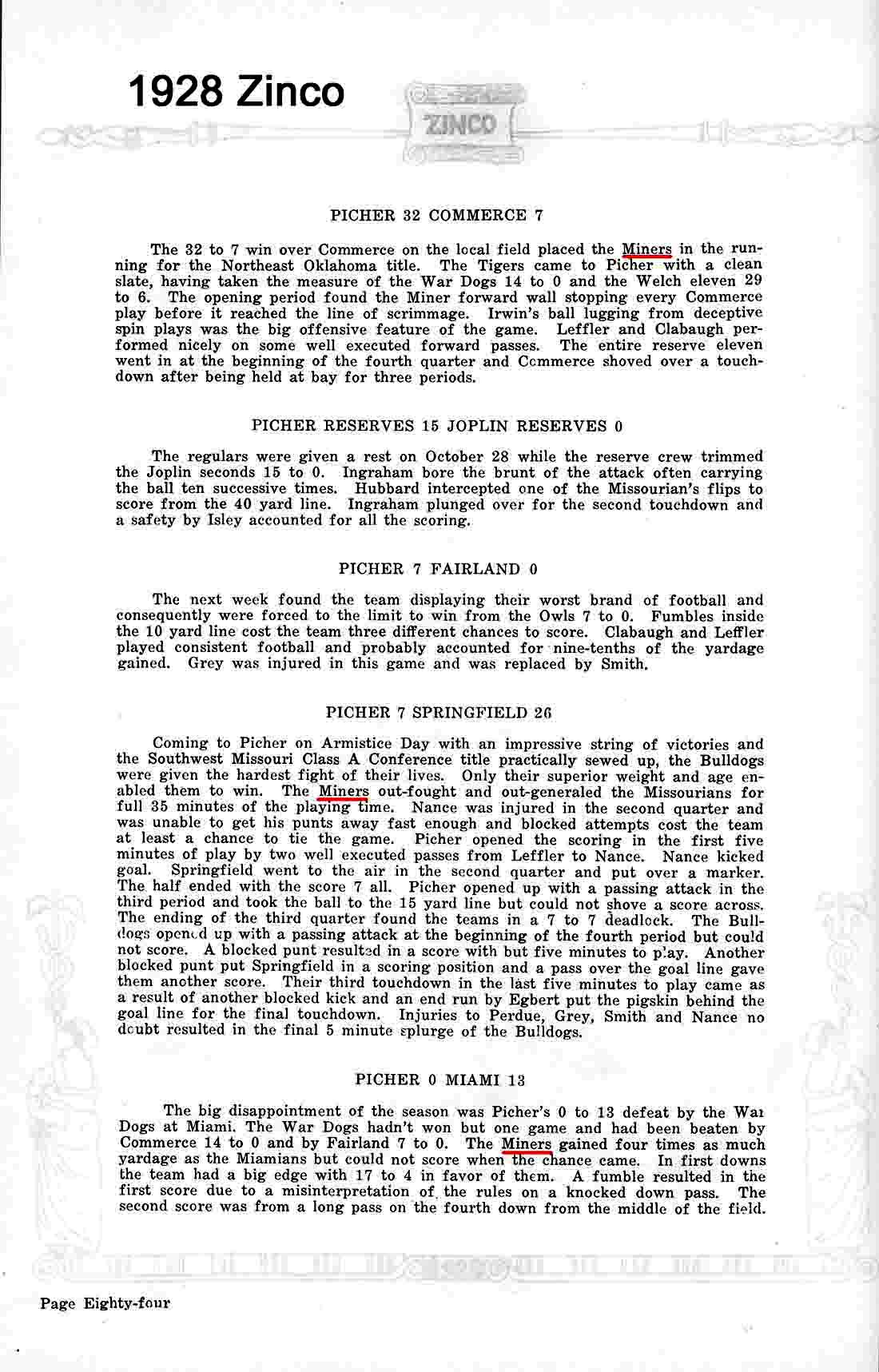 Obviously, the Picher High School mascot in 1928 was still a Miner