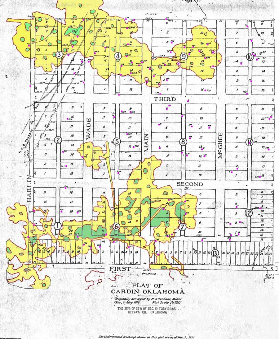 This map shows the undermining of Cardin. The green denotes the piers, while the