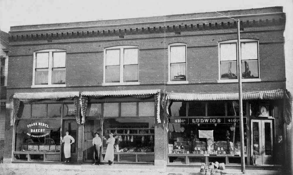 the weather and sun location. Wares were displayed in the front window, even the meat market!