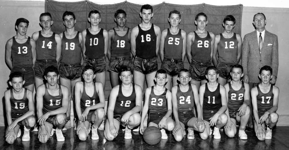 Bottom Row: Lloyd Stone, Roy Hart, Glen Fox, Billy Beam, John Graham, Larry Madden, Morris Williams.
